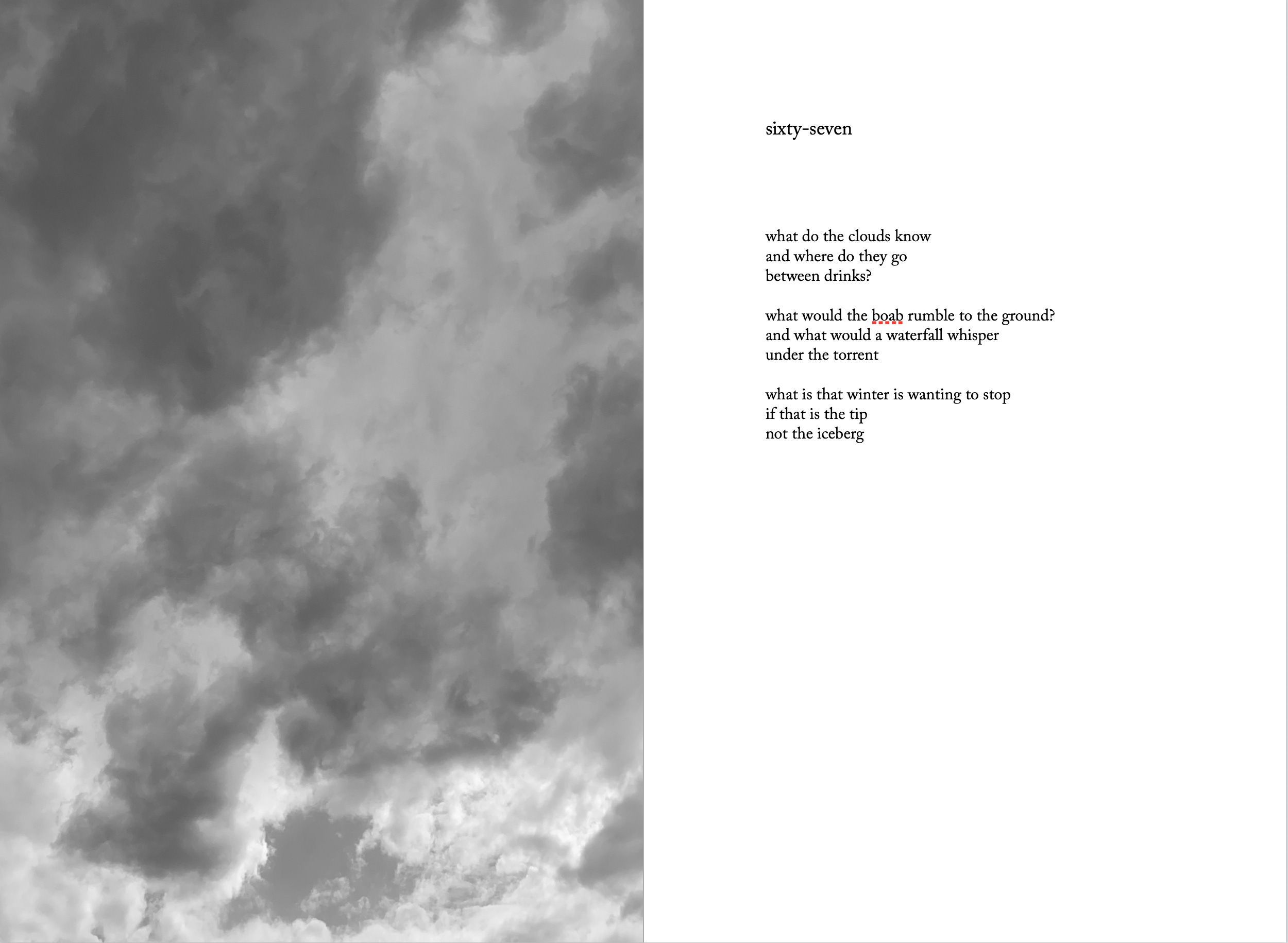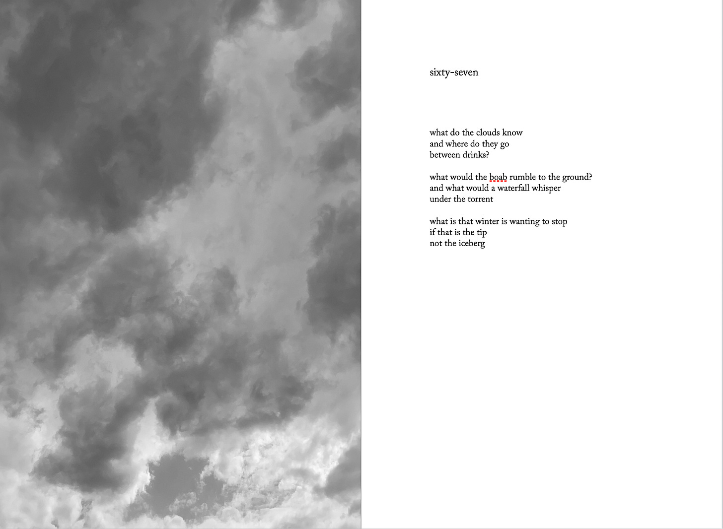 How wondrous and ravishing to be able to keep the light from some sweet afternoon or the dawn of a new day? Indeed but I also think of this poem as being about the importance of perspective, as if certain things, or people, or days, or whatever ‘their’ and ‘them’ may be beyond the plural, can only be sought let alone found once one’s sight is clarified.